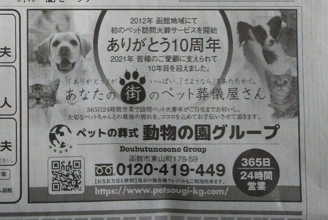 「ペットの訪問火葬」という”ペットの死”に向き合う仕事柄、これまで大々的に広告を打つのを控えてきたわけですが、弊社も一つの区切りを迎えたこのタイミングで、現在各媒体に広告を出させていただいております。